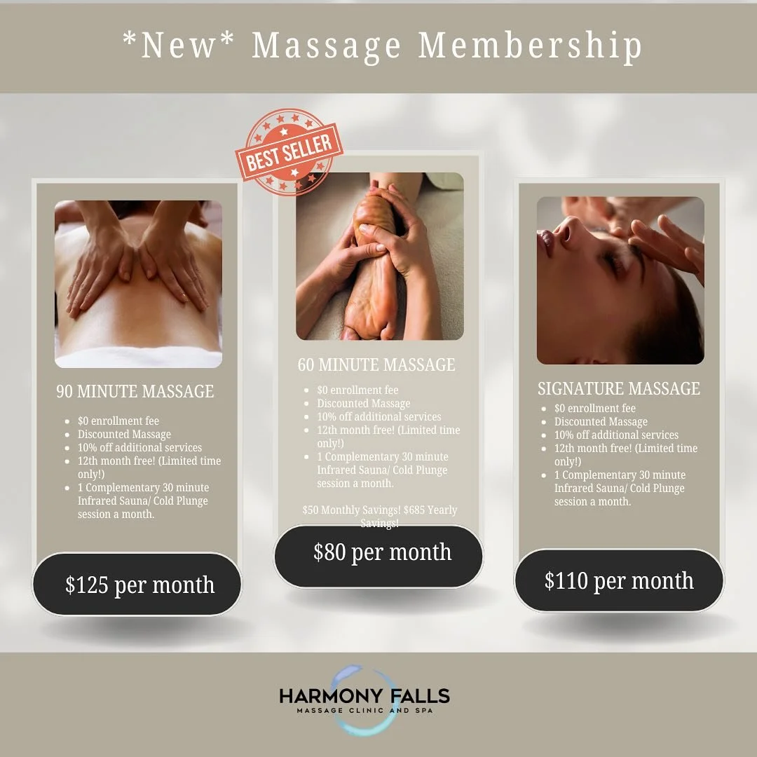 Make massage and facials part of your monthly Self-care ritual with Harmony Falls Memberships and Series.